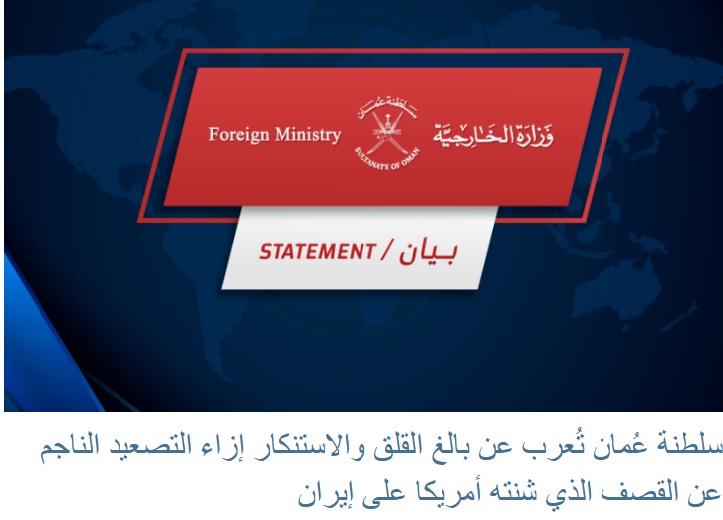 ئزارت خارجه عمان با انتشار بیانیه ای در تاریخ یکشنبه 1 تیرماه نگرانی عمیق خود را از تشدید تنشها ناشی از حملات هوایی مستقیم ایالات متحده به اهدافی در داخل جمهوری اسلامی ایران ابراز و آن را محکوم کرد.